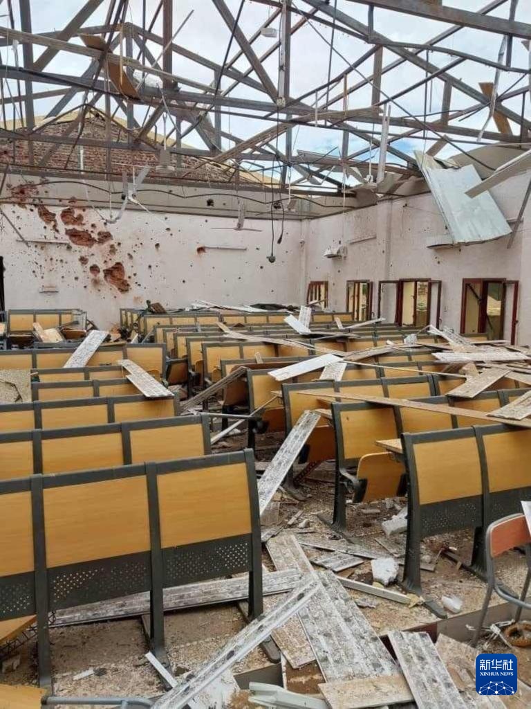 这是8月26日在苏丹北达尔富尔州首府法希尔市拍摄的在炮击中损毁的学校(手机照片)。