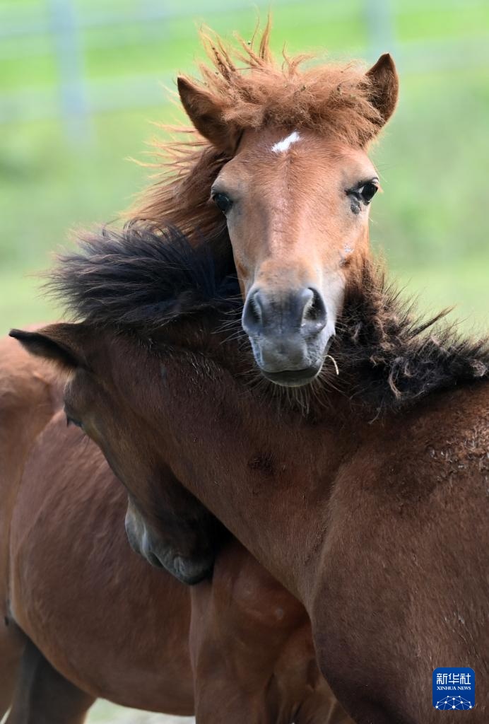 8月27日,在广西德保矮马王国,两匹德保矮马在一起。