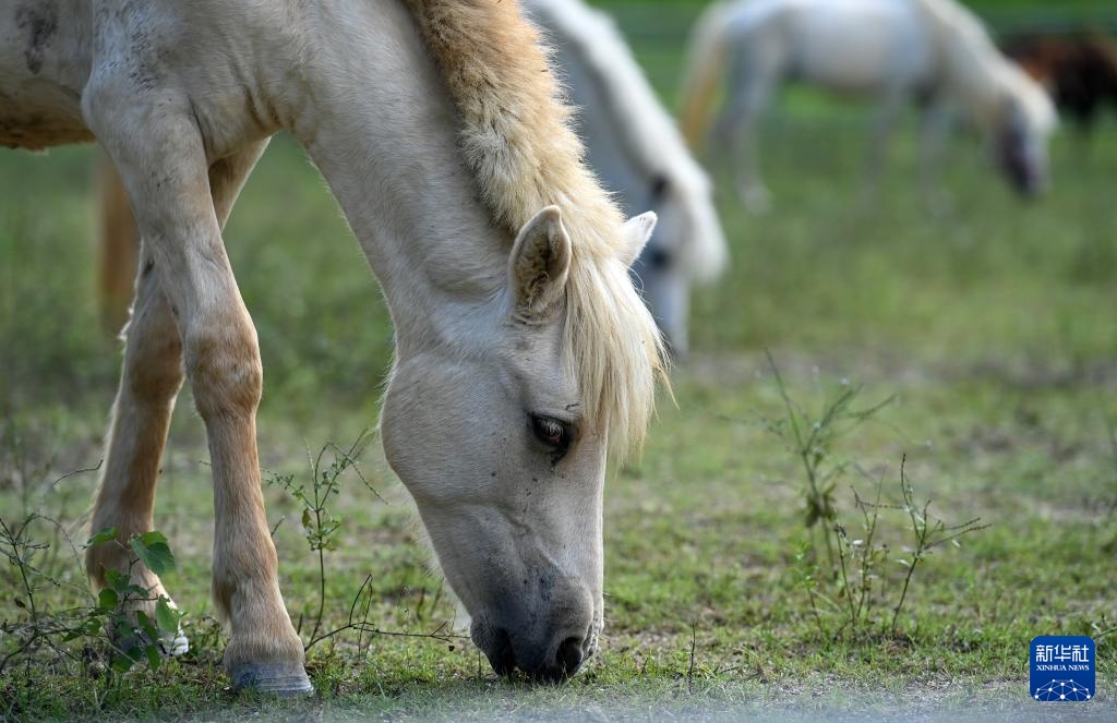 8月27日,在广西德保矮马王国,德保矮马在吃草。
