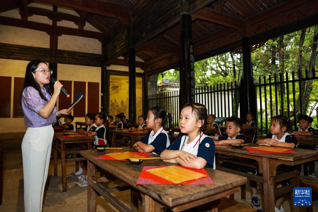 8月28日,宁波市中城小学的一年级新生前往孔庙参加开学礼。