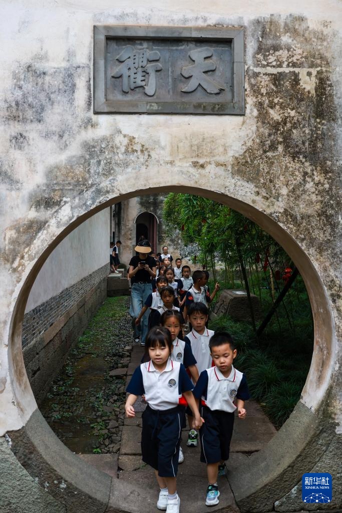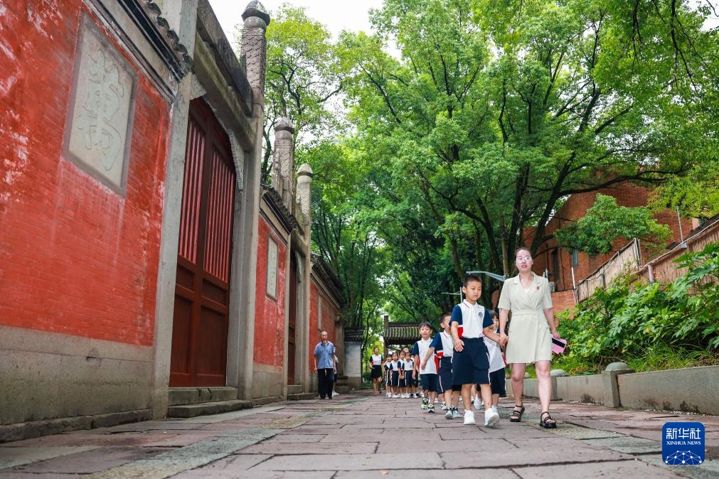 8月28日,宁波市中城小学一年级新生在开学礼结束后参观孔庙。