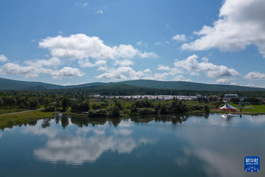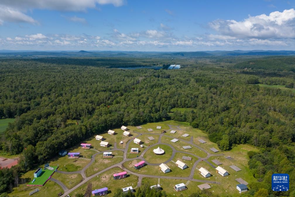 这是8月27日拍摄的黑龙江伊春森工集团上甘岭林业局公司溪水林场的溪水野奢帐篷度假酒店项目(无人机照片)。