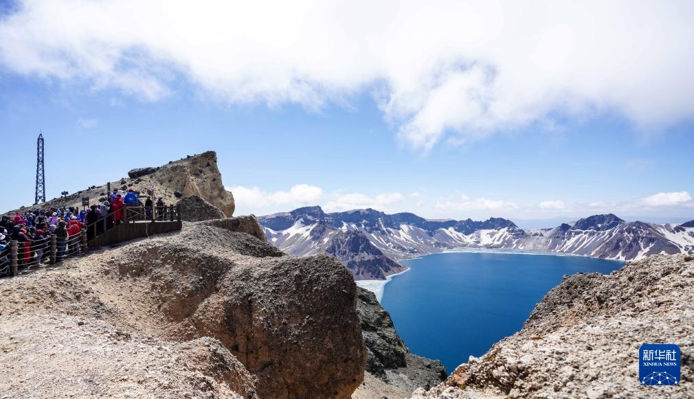 游客在长白山天池景区观赏(5月24日摄)。
