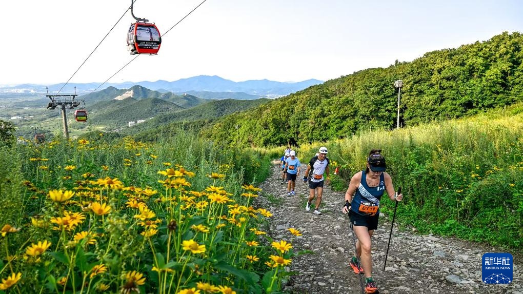 8月24日,越野跑爱好者在吉林市万科松花湖度假区越野跑。
