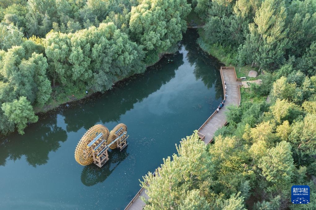 人们在龙江森工集团绥棱林业局生态文化旅游景区一处公园游览(7月25日摄,无人机照片)。