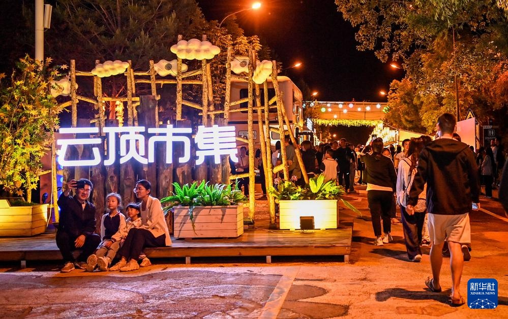 游客在长白山北景区二道白河镇的云顶市集游玩(6月13日摄)。