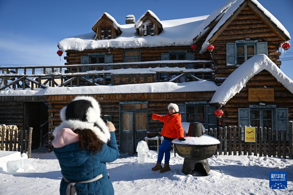 游客在内蒙古兴安盟阿尔山市游玩(2023年12月14日摄)。