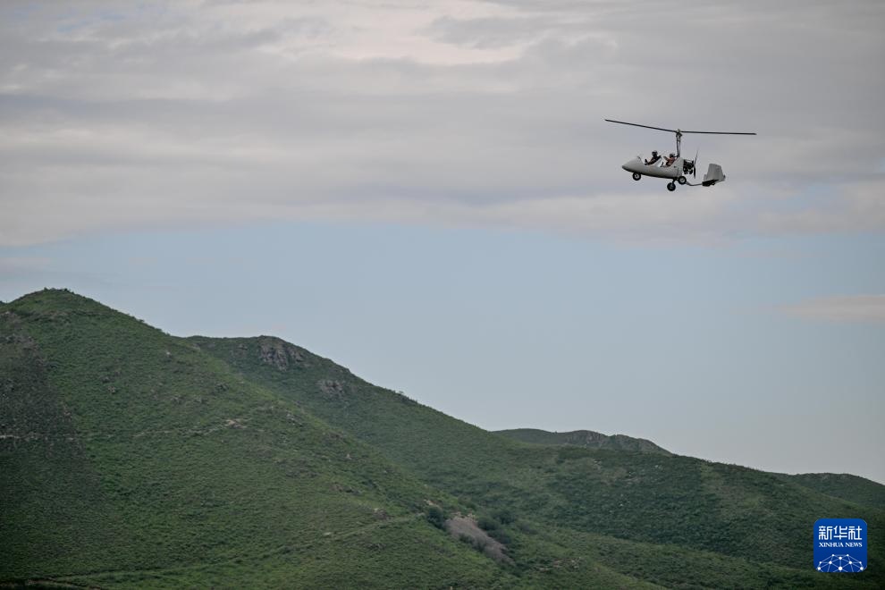 8月8日,游客在内蒙古兴安盟科尔沁右翼前旗乌兰毛都草原乘旋翼机游玩。