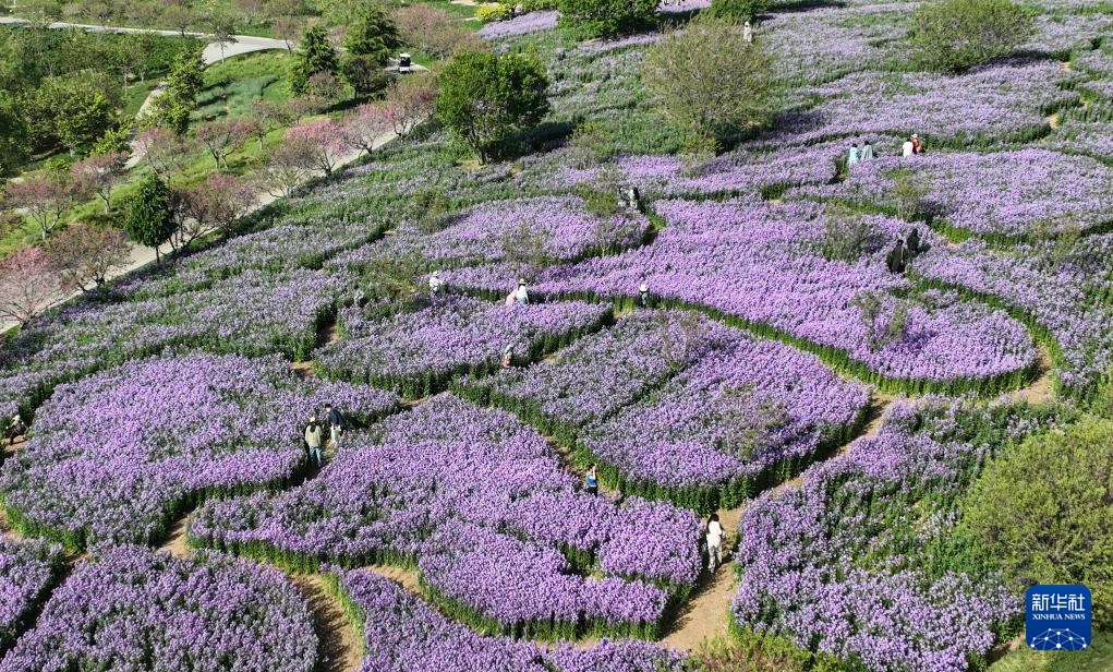游客在辽宁大连英歌石植物园游览(5月11日摄,无人机照片)。