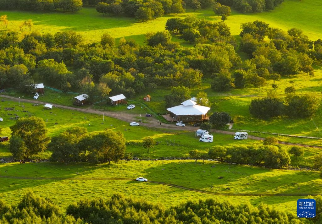 这是8月8日拍摄的内蒙古兴安盟乌兰毛都草原深处的一家民宿(无人机照片)。