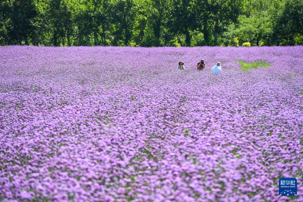 8月26日,游客在吉林省松原市查干湖花海拍照留念。