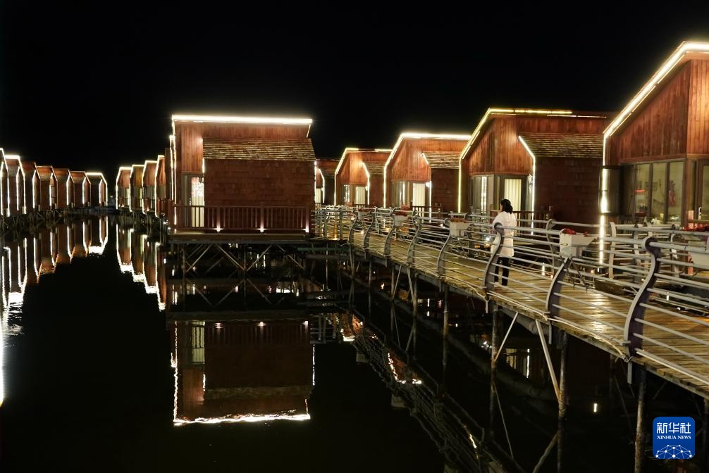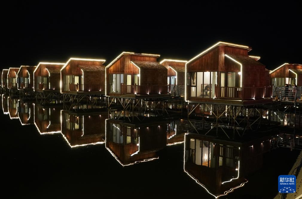 8月28日拍摄的唐山国际旅游岛月岛夜色。