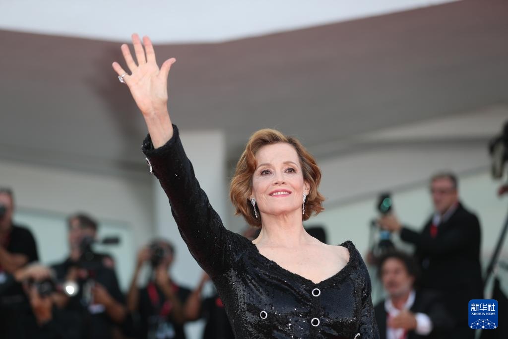 8月28日,在意大利威尼斯,西格妮·韦弗亮相开幕式红毯。