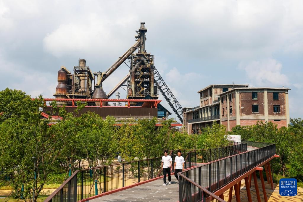 8月29日,游客在大运河杭钢公园内参观游览。
