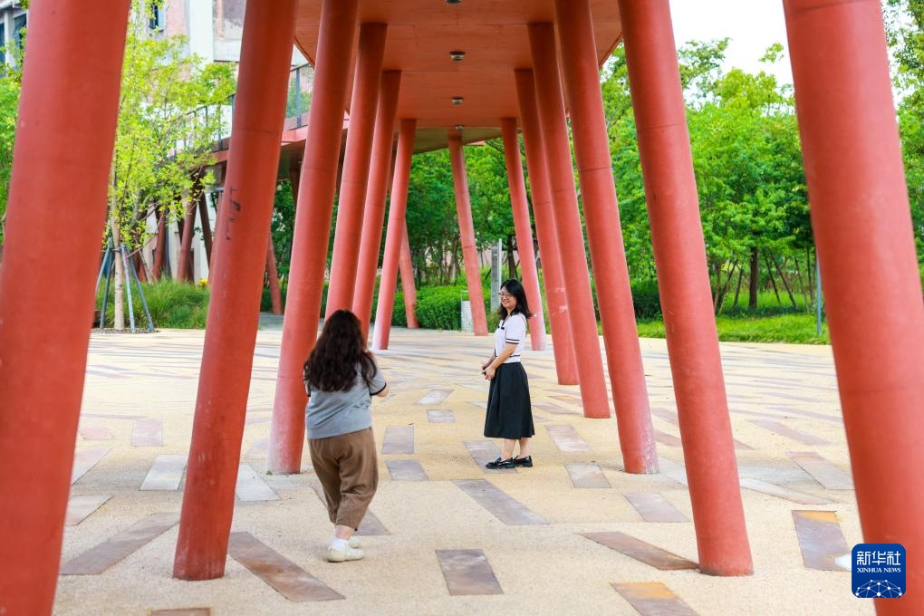 8月29日,游客在大运河杭钢公园内游览拍照。