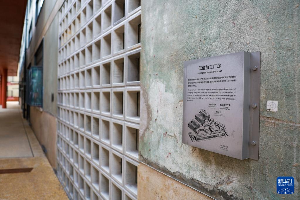 大运河杭钢公园内建筑上的铭牌记录了这座工业遗存曾经的用途(8月29日摄)。