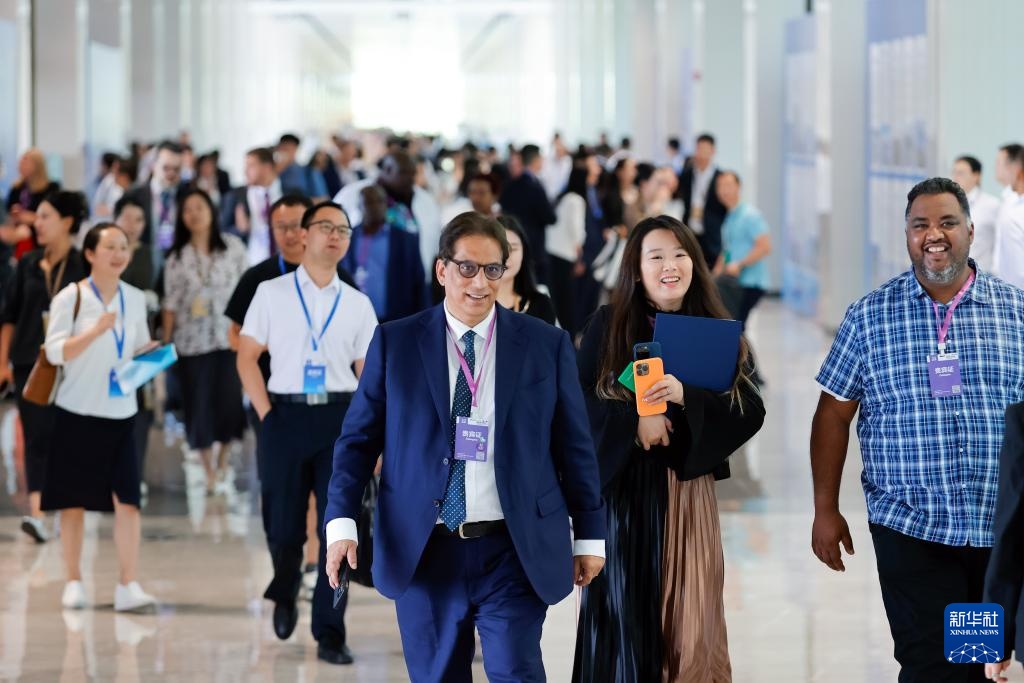 8月28日,参会嘉宾走向2024“一带一路”媒体合作论坛主会场。