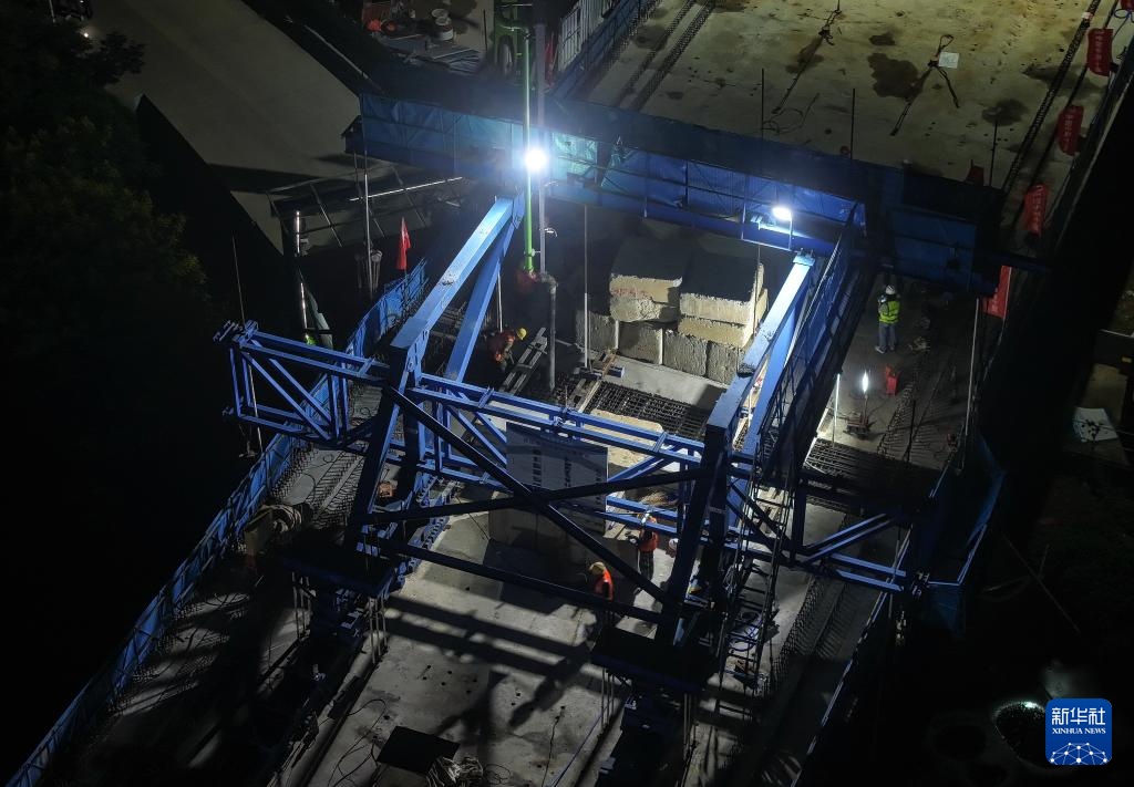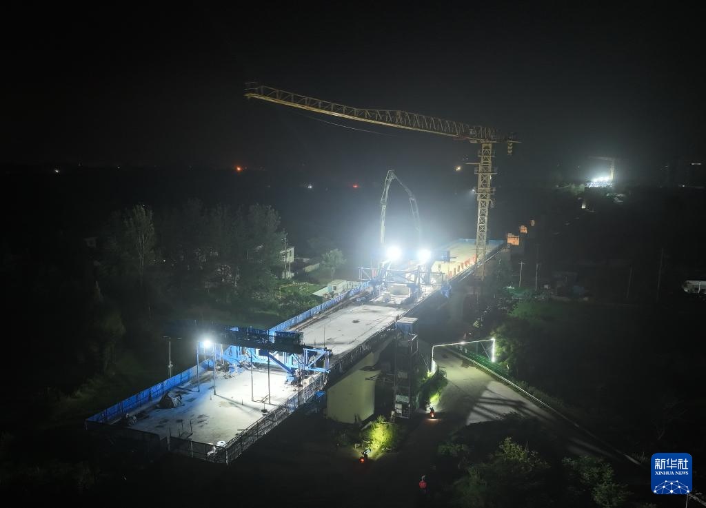 这是中铁十局沪渝蓉高铁沪宁段Ⅻ标三分部首座连续梁合龙施工现场(8月29日摄,无人机照片)。