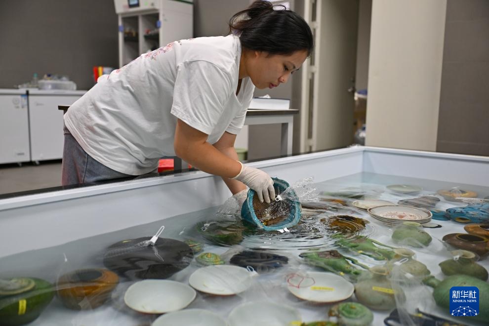在中国(海南)南海博物馆,有一支文物保护团队正在对南海西北陆坡一号、二号沉船遗址出水文物进行清理、保护、修复和测量、登记、整理等工作。