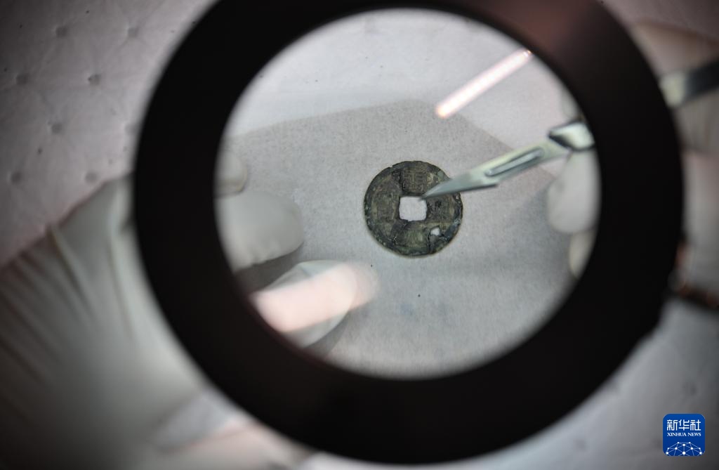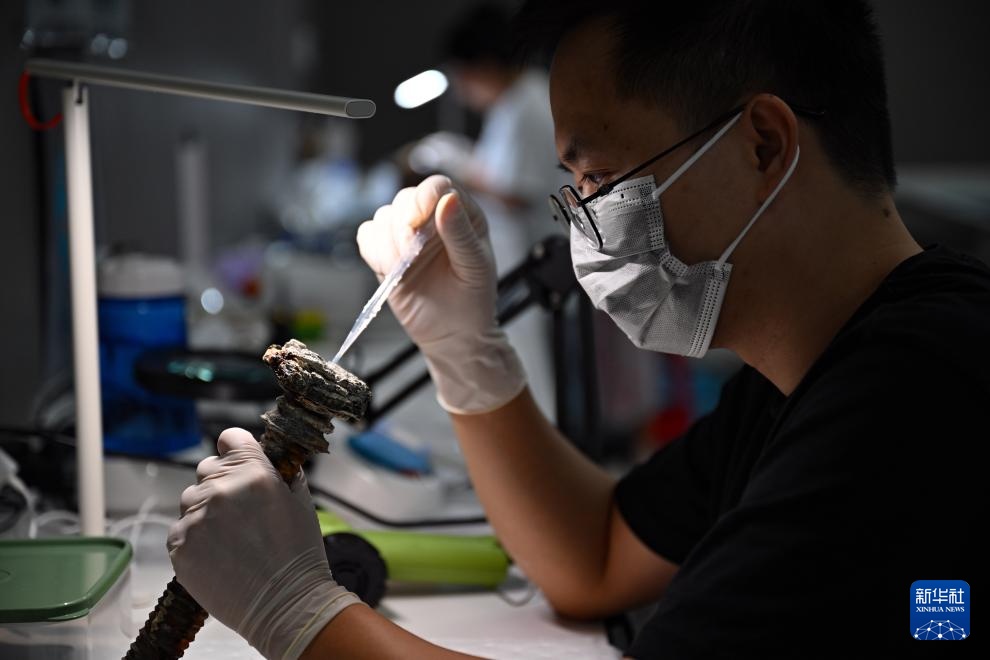 8月27日在中国(海南)南海博物馆拍摄的修复中的文物。
