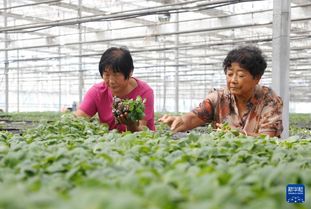 8月29日,在邢台市南和区贾宋镇一家育苗基地,工人在移栽蔬菜秧苗。