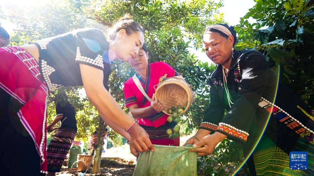 8月29日,云南省临沧市双江拉祜族佤族布朗族傣族自治县邦丙乡邦况村的果农在采摘坚果。