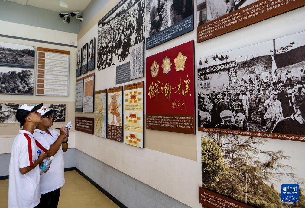 8月29日,两名参加研学的学生在古田会议纪念馆参观。