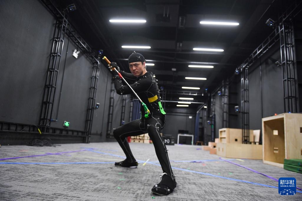 8月28日,在深圳的一个动捕基地,殷凯在演出中利用肢体动作展现游戏角色特点。