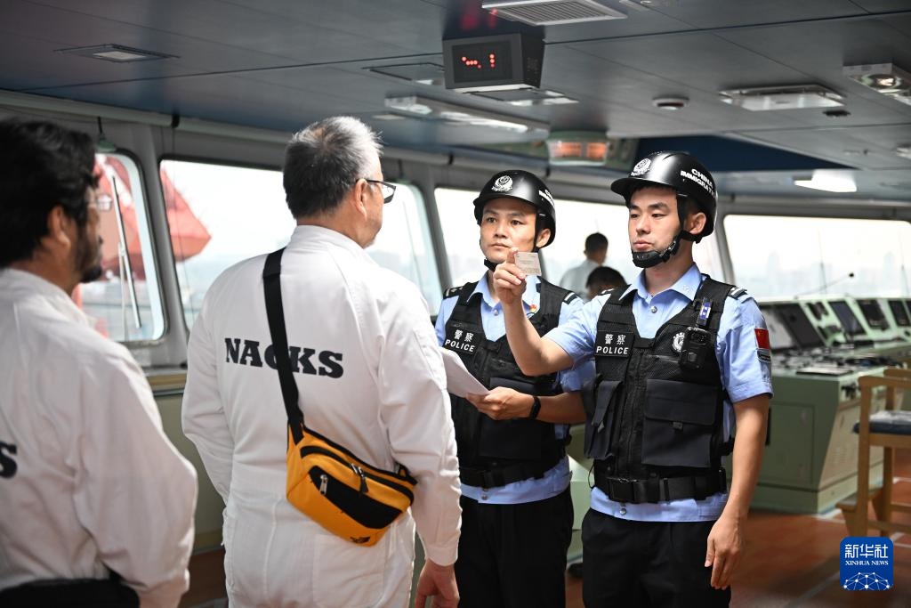 8月30日,在“东方葡萄牙”轮上,江苏南通边检站民警对参加试航人员进行人证对照。