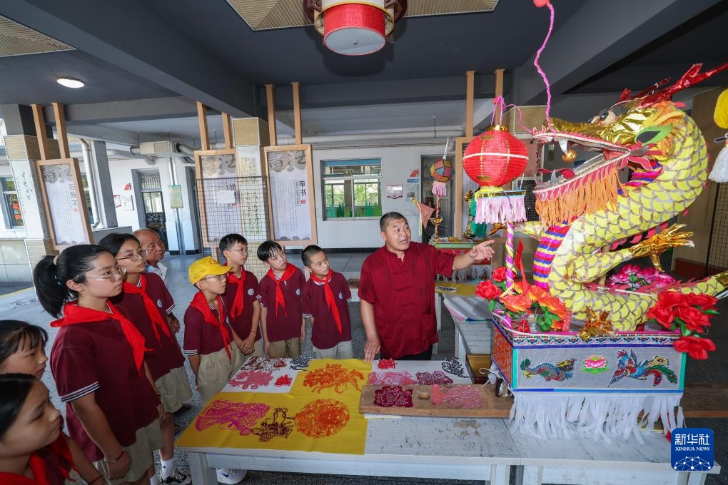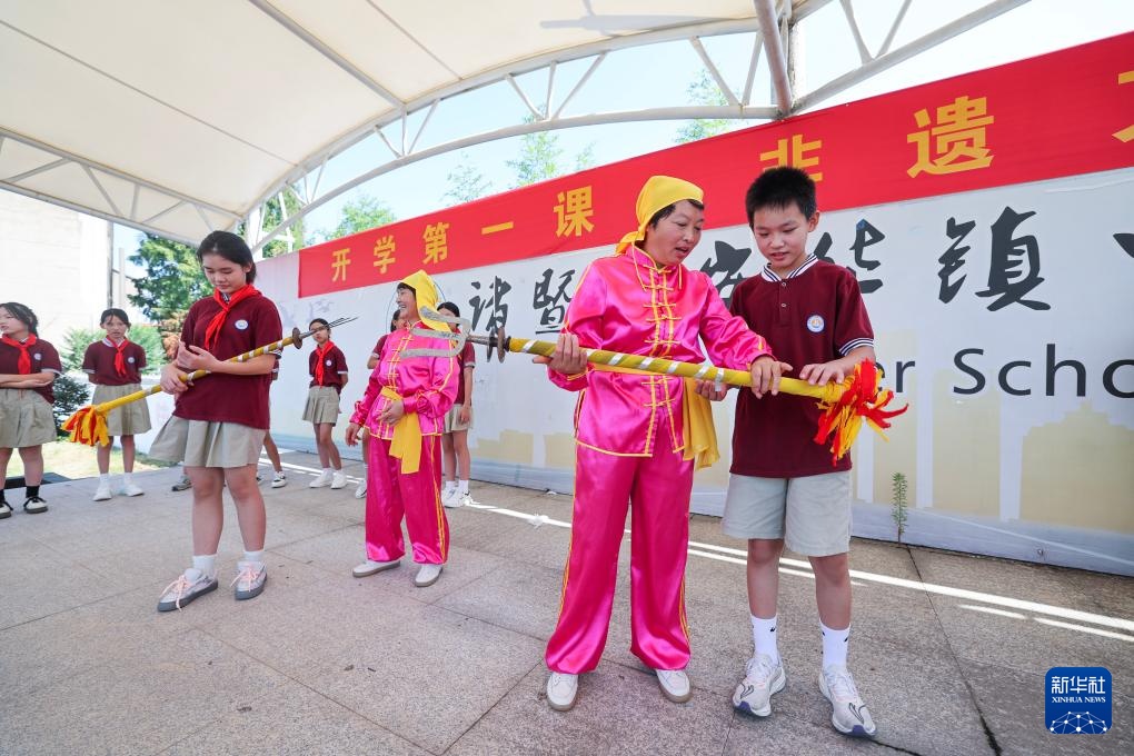 当日,浙江省诸暨市安华镇中心学校开展“非遗进校园”开学第一课主题活动,将当地传统的板凳龙、响叉、剪纸等特色非遗项目引入课堂,让学生们近距离接触传统技艺与特色文化。