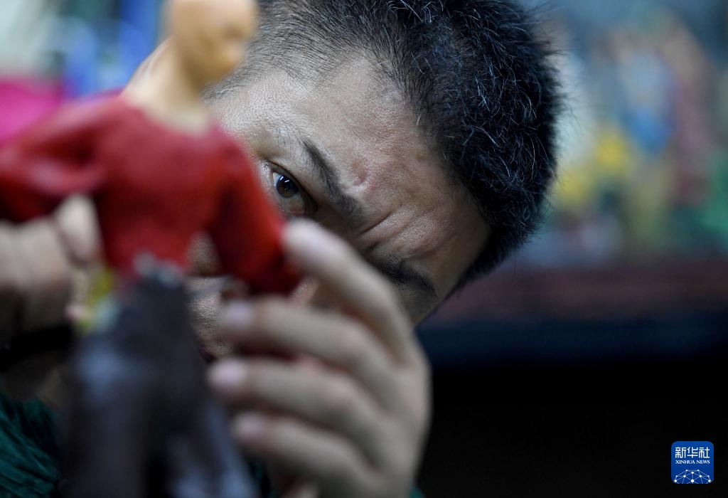 提及面塑的难点,宋展克认为在起形阶段,头身比例的和谐与动态平衡尤为重要,而到了塑形阶段,人物神态的捕捉便是关键,有时他会对人物神情、动作进行夸张处理,使作品既保留传统文化的精髓,又更加灵动有活力。“这不仅是一门技艺的修炼,更是对美的追求与感悟。”宋展克说。