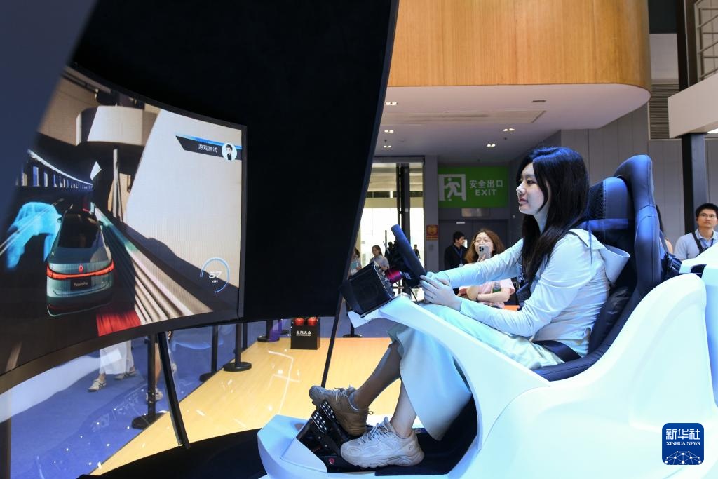 8月30日,参观者在第二十七届成都国际汽车展览会体验模拟驾驶。
