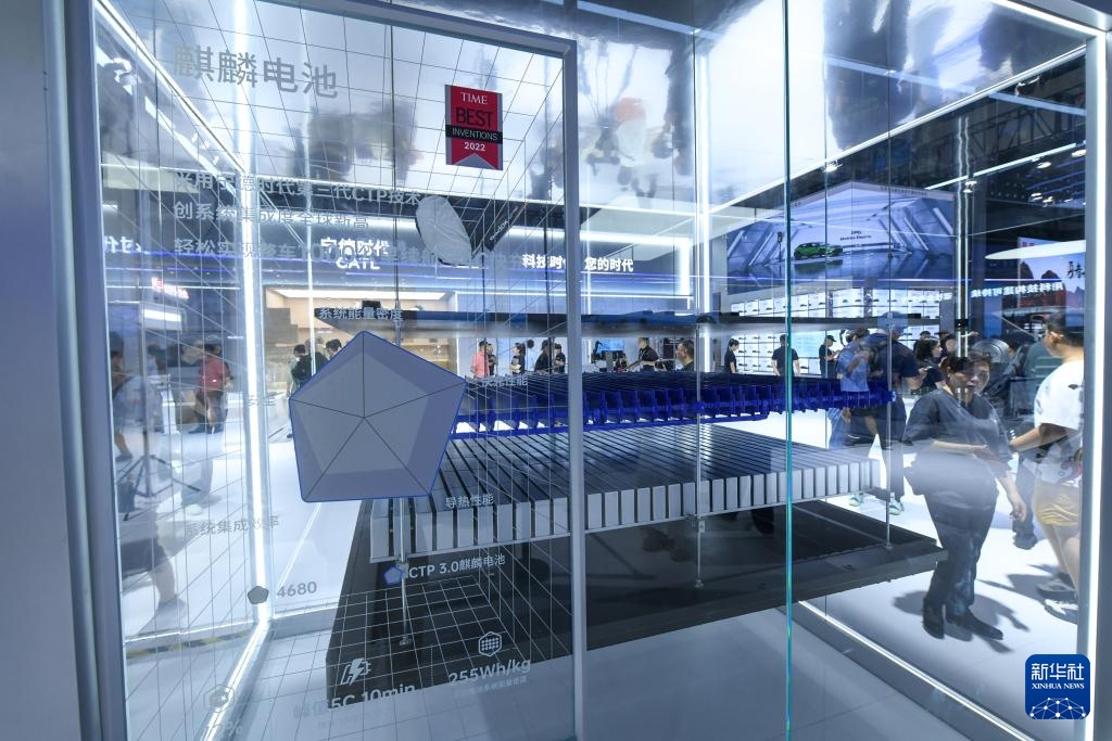 8月30日在第二十七届成都国际汽车展览会宁德时代展台拍摄的麒麟电池。