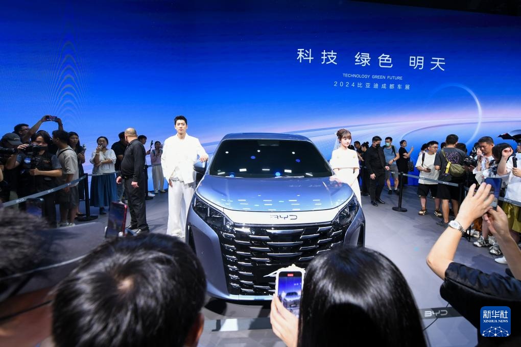 8月30日,在第二十七届成都国际汽车展览会比亚迪展馆,参观者在拍摄新发布的比亚迪王朝首款中大型旗舰MPV“夏”。