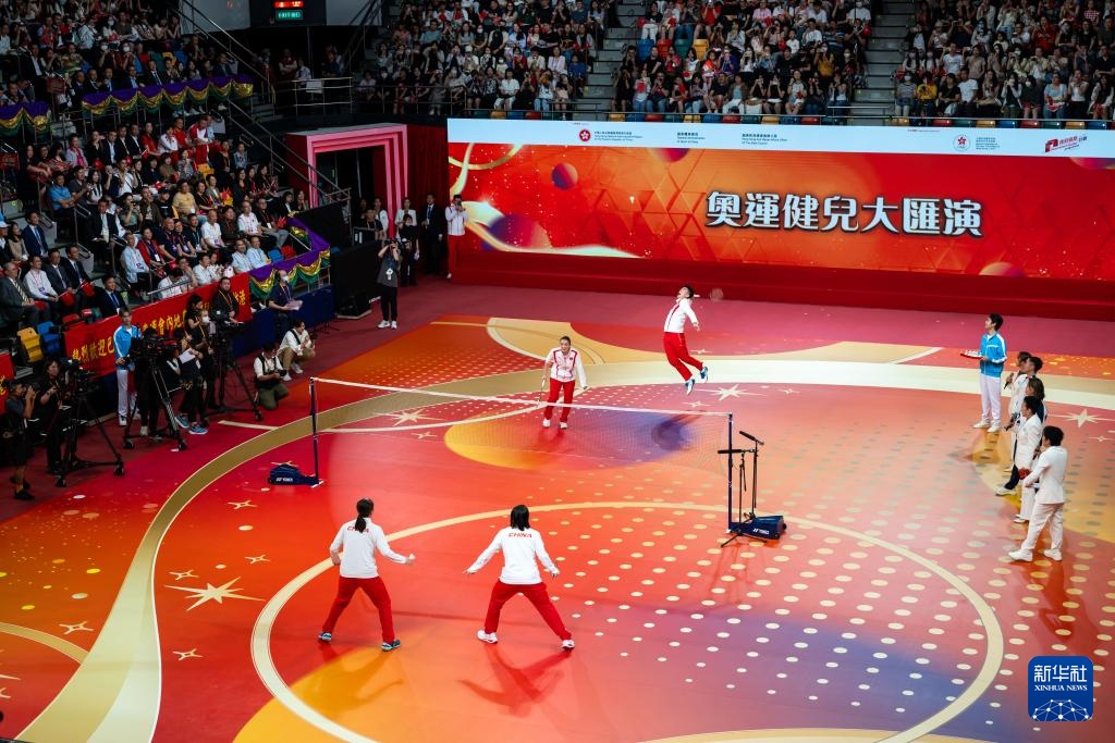 当日,由内地奥运健儿访港代表团参加的“奥运健儿大汇演”在香港伊利沙伯体育馆成功举办。健儿们各展绝技,为香港观众献上一场丰富多彩的体育盛宴。