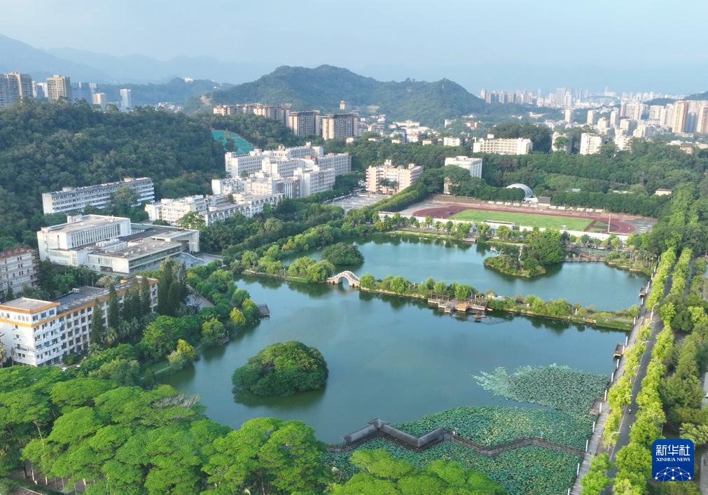 福建农林大学观音湖畔景观(8月30日摄,无人机照片)。