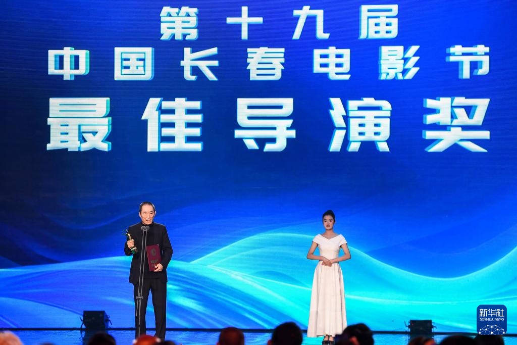 9月1日,张艺谋(左)发表获奖感言,他凭借《第二十条》获得金鹿奖最佳导演奖。