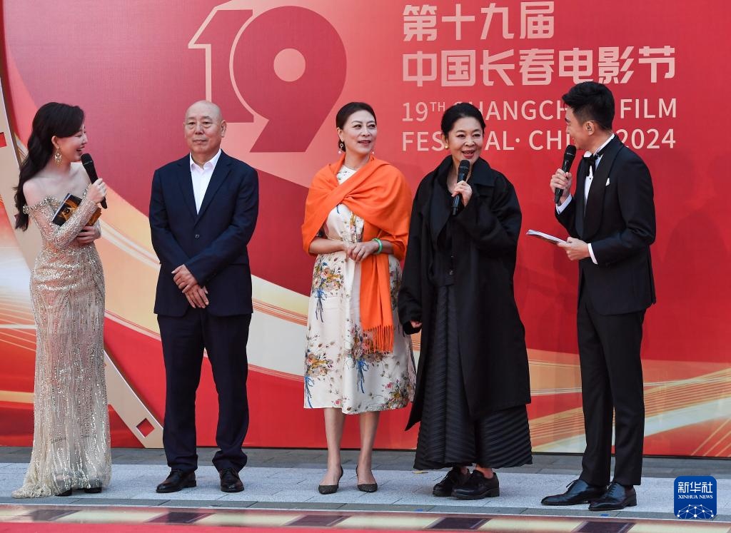 9月1日,李诚儒(左二)、岳红(左三)、倪萍(右二)亮相长春电影节闭幕式红毯。
