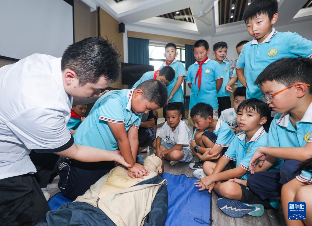 9月2日,东林镇卫生院医生在东林小学给学生普及应急救护知识。