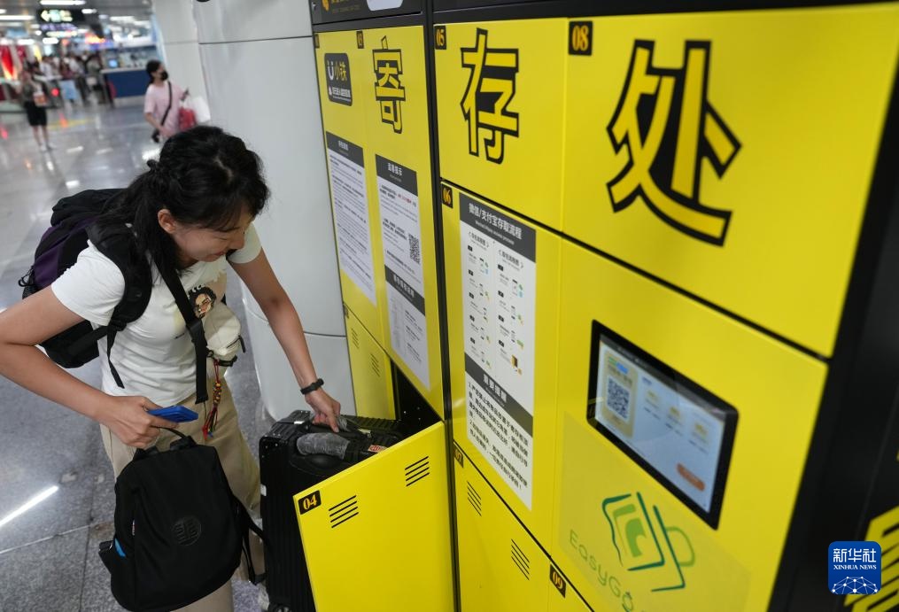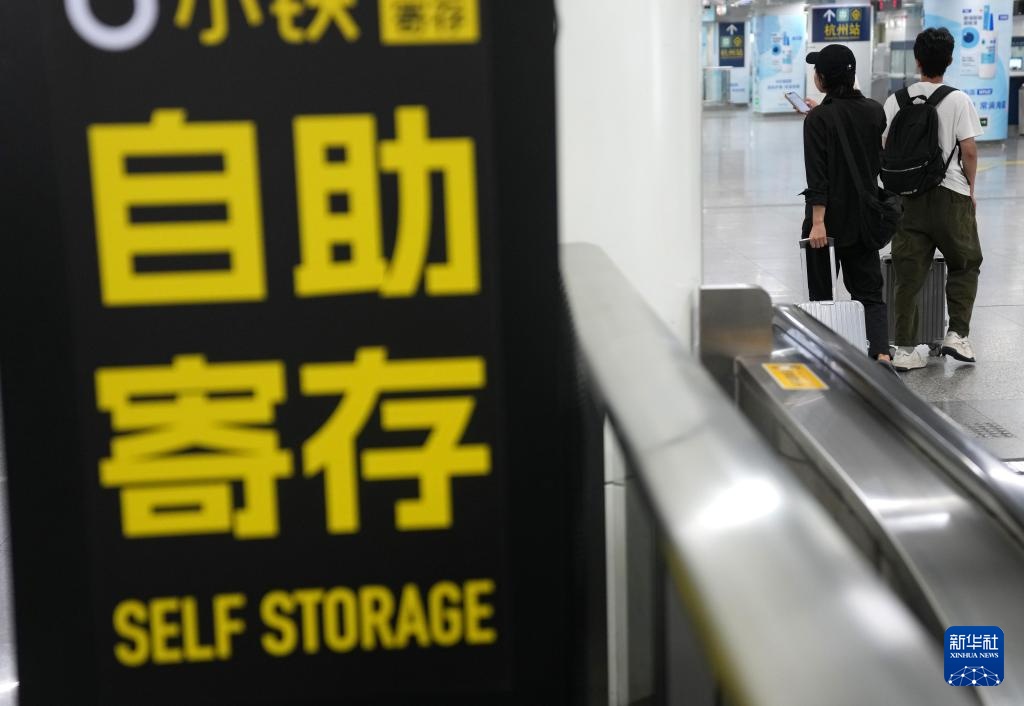 9月2日,一名来自北京的游客将行李存入杭州地铁5号线城站站的自助寄存柜内。