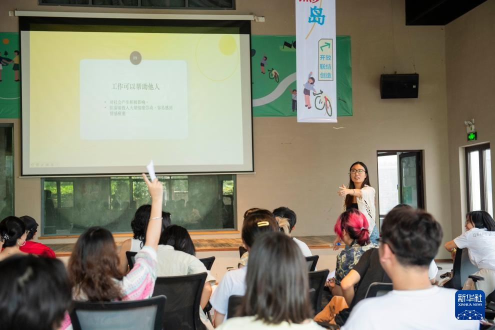 8月31日,在黄山市黟县的“黑多岛”社区,一名旅居青年向听众分享个人经历。