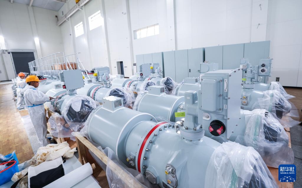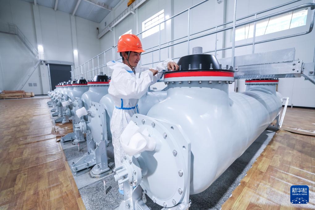 9月3日,在500千伏长兴变变电站建设现场,国网浙江省电力有限公司的施工安装人员在500千伏GIS无尘车间进行设备安装。