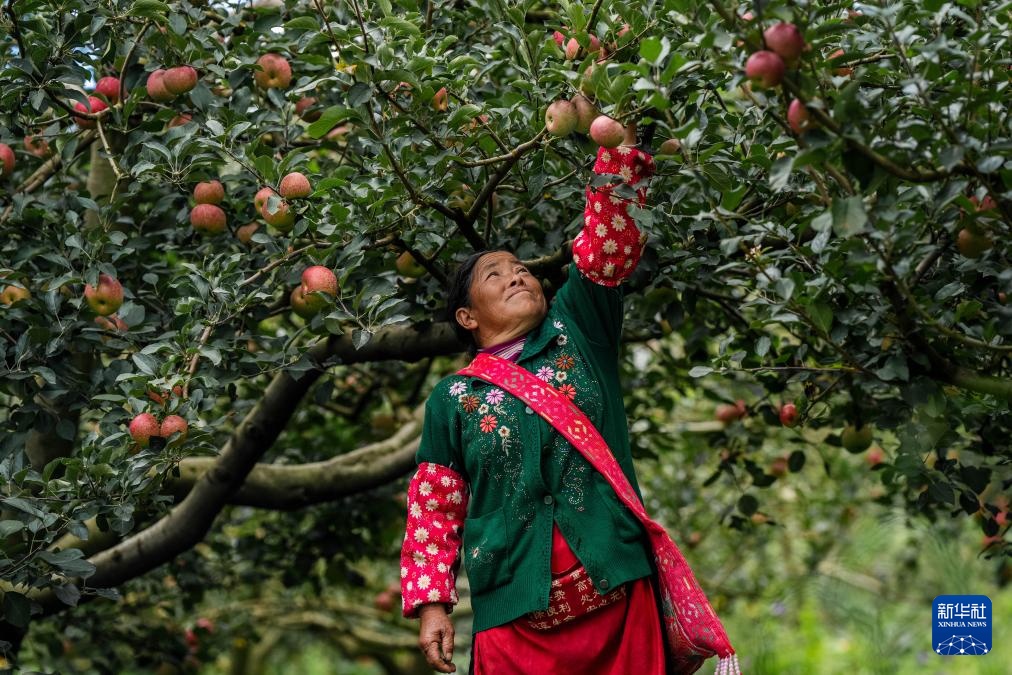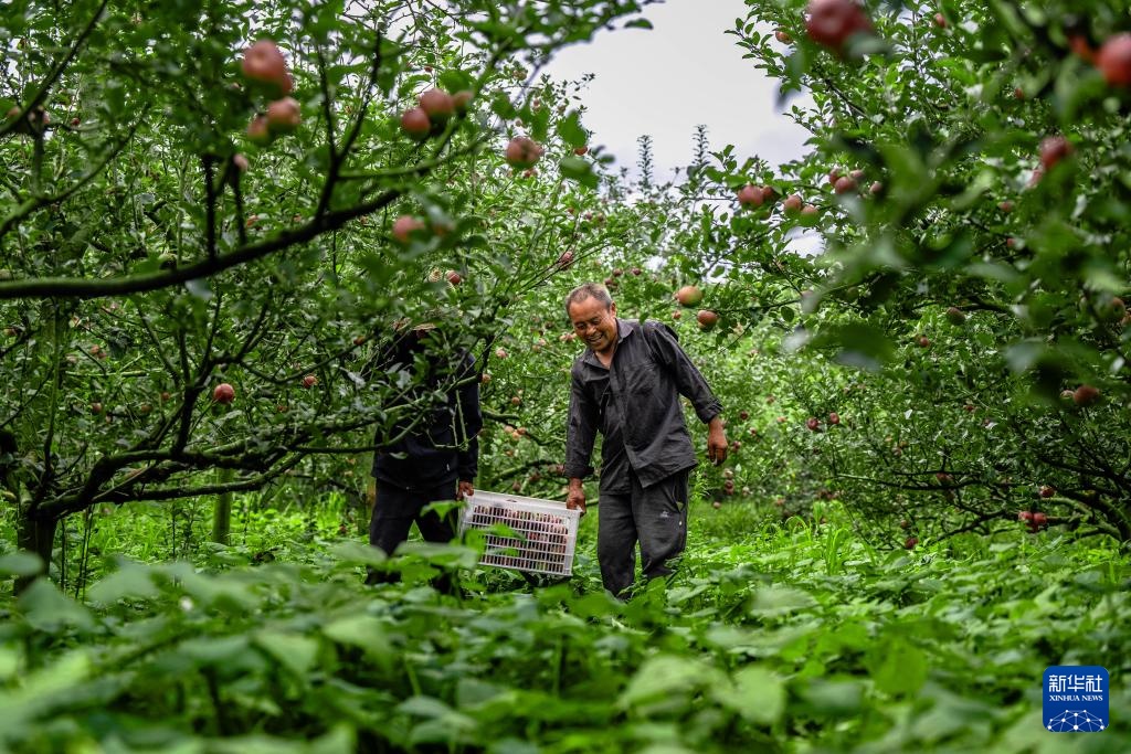 9月3日,云南省红河州蒙自市西北勒乡的农户在采摘苹果。