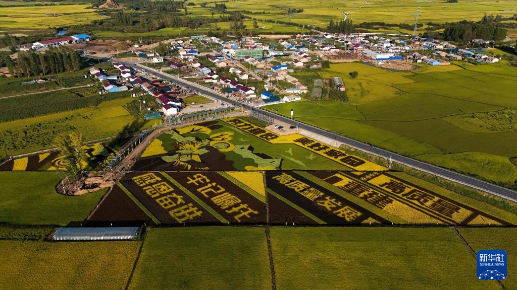 这是9月3日拍摄的龙王庙村的稻田画(无人机照片)。