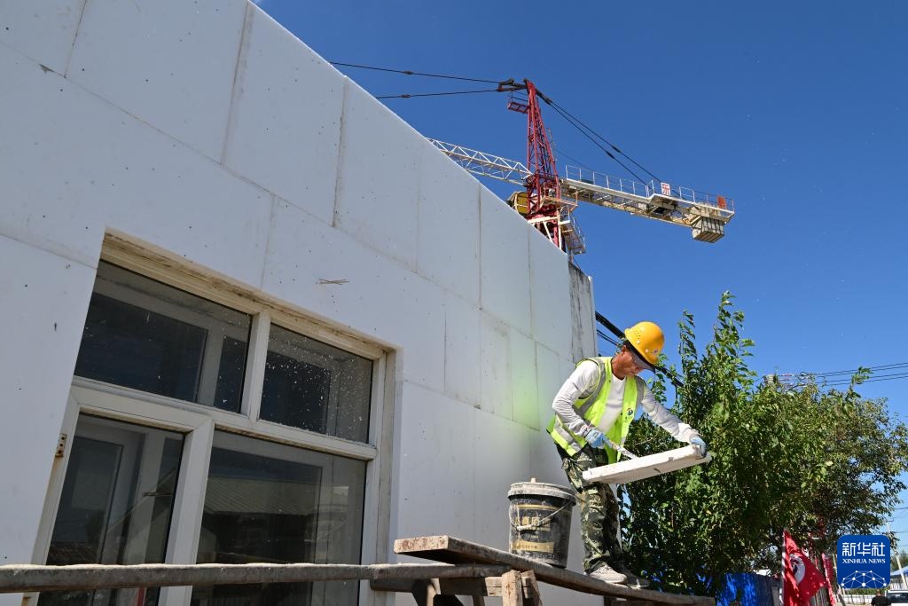 工人在为龙王庙村的房屋加装保温板(9月3日摄)。