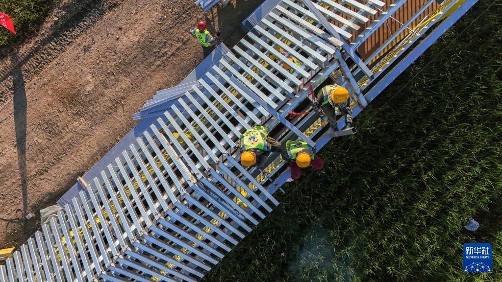 9月3日拍摄的建设中的龙王庙村稻田观光栈道(无人机照片)。