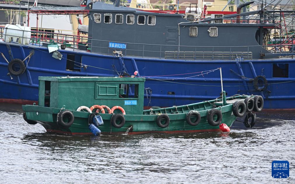 9月4日,一艘渔船准备停靠在海南省海口市新港码头避风。