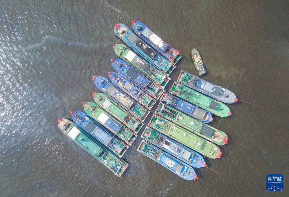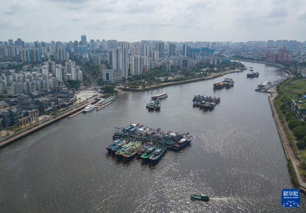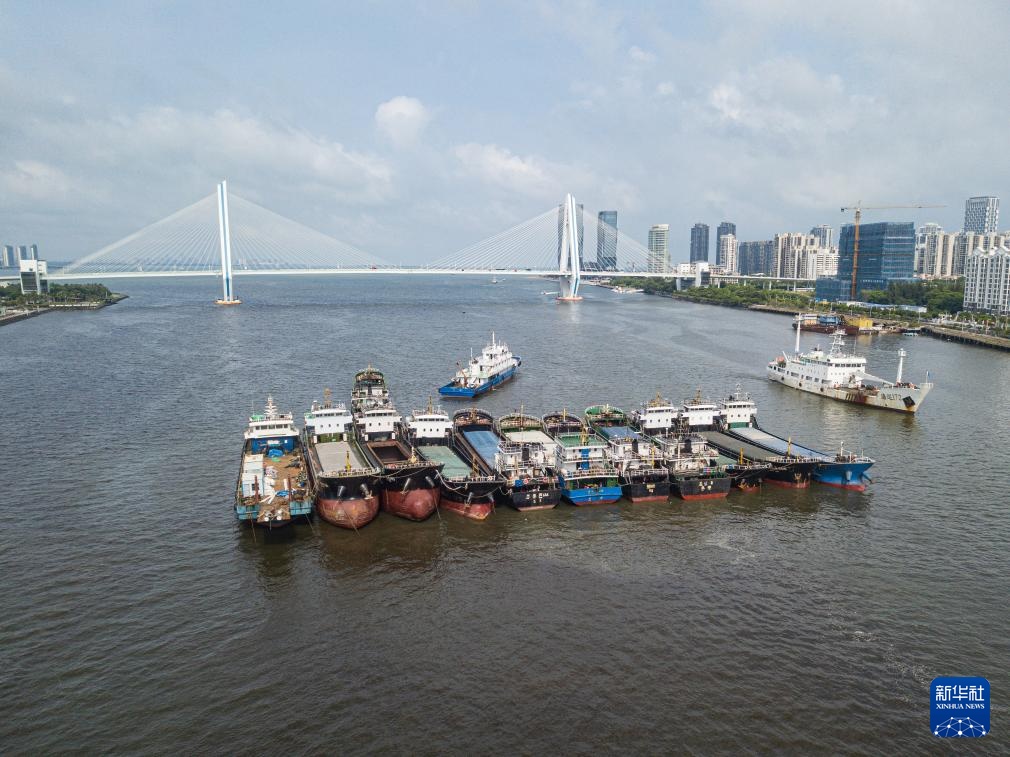 9月4日,船只在海南省海口市新港码头停靠避风(无人机照片)。