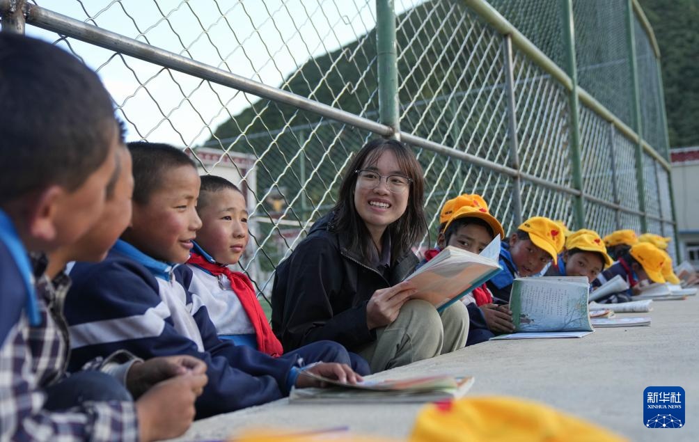 在娘蒲乡中心小学,娘蒲乡中心小学藏文老师格桑曲珍在上藏文课(9月3日摄)。格桑曲珍曾经也是该校学生。