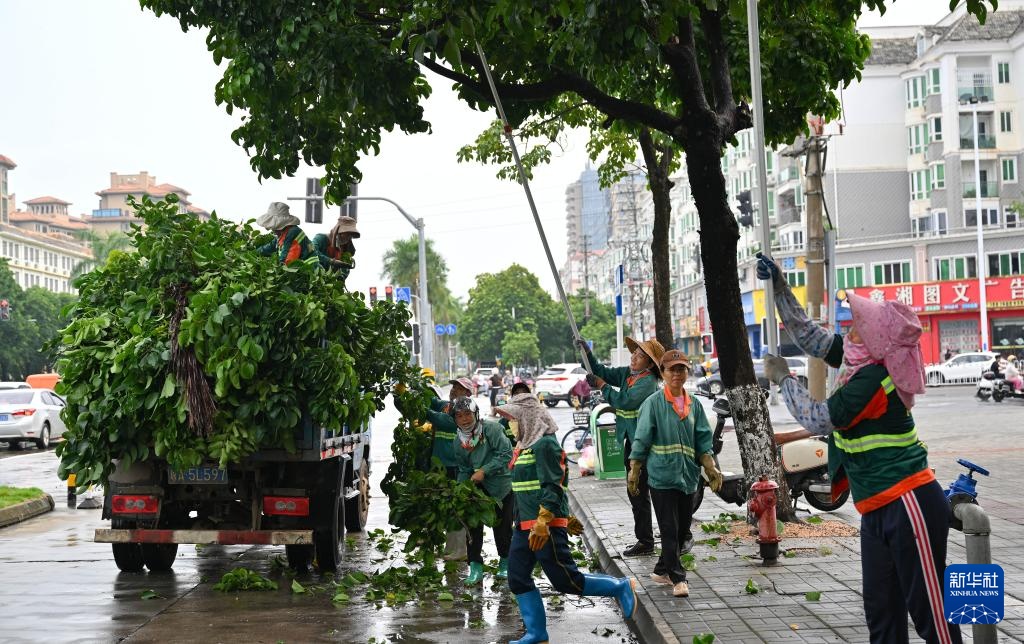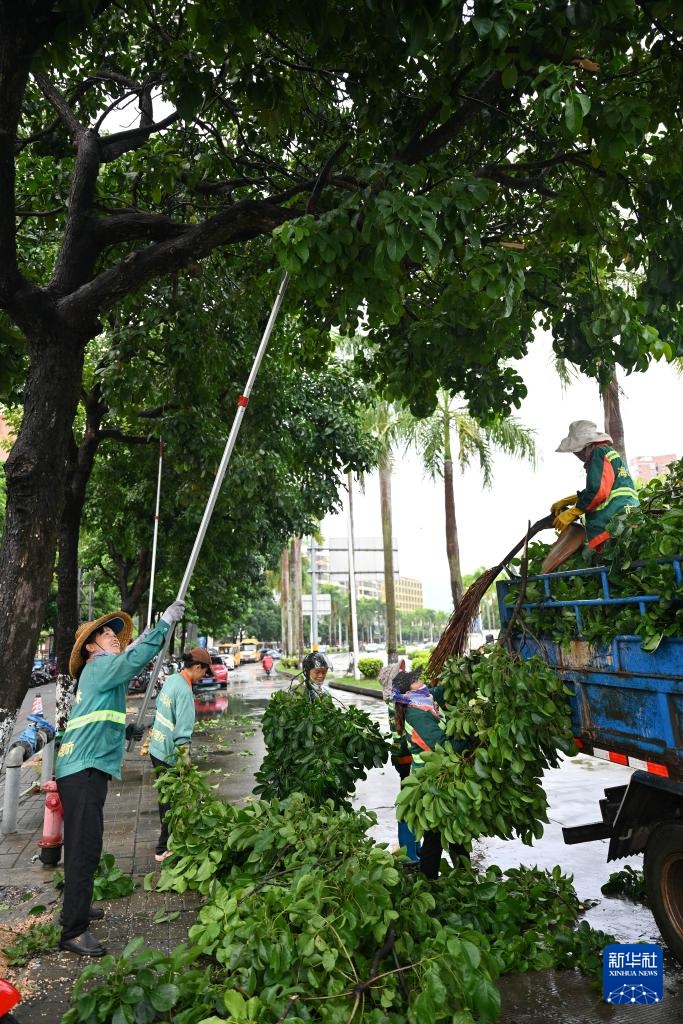 9月5日,海口市公共绿化管理所的工作人员在修剪树木,消除安全隐患。